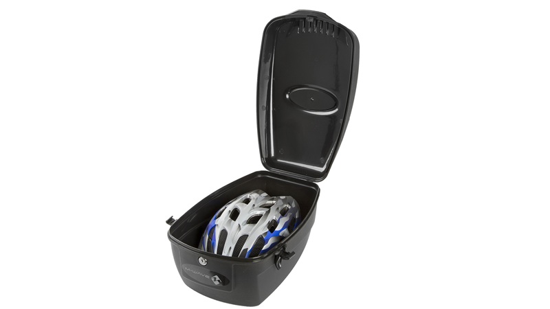 Un baúl para bicicleta, también conocido como caja, cofre o top case, es un contenedor rígido, que se instala en el portaequipajes trasero de tu bicicleta. Funciona como un maletín cerrado donde puedes guardar cosas de un tamaño pequeño o medio: el casco, la compra, documentos y otros objetos que necesites proteger del clima, impactos y de miradas indiscretas
